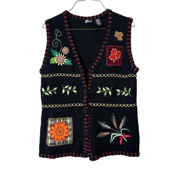 Holiday Editions VINTAGE Fall embroidered applique bedazzle sweater vest SMALL
