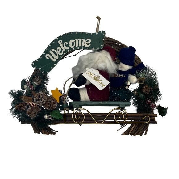 Holiday Elegance Santa Snowman Welcome Wreath Sleigh Design New