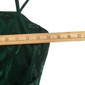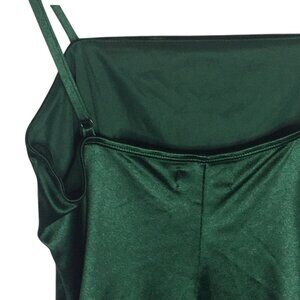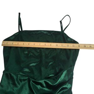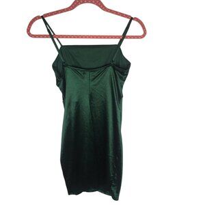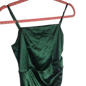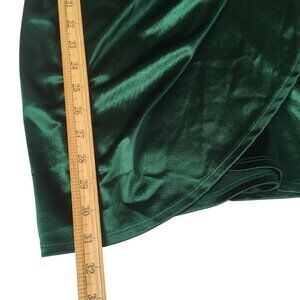 Holiday Fairy Dress Christmas Women Medium Green Satin Ruched Bodycon Mini Party