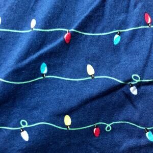 - Bottoms: all over string of Christmas lights print, elastic waist with drawstring, pull-on styling, straight leg