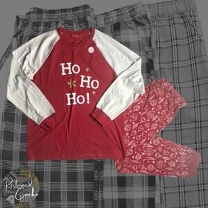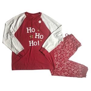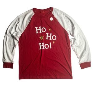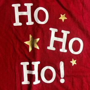 - Top: text that reads " Ho Ho Ho", long sleeves, crewneck, pullover styling, intended to hit at hip