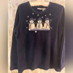Excellent condition retro fleece sweatshirt from White Stag. Size medium. Three snowmen with bells on their scarves that ring as you move.