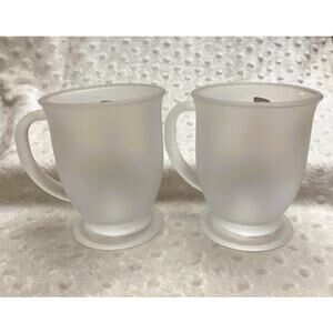 Brand new, Holiday Frosted Snowmen 14.6oz Coffee Mug Pair "There's No Place Like Home". Cute frosted mugs feature footed style, snowman silhouette made from the words & snowflakes, and sturdy large handle. Measures 4 3/4" tall, 3 7/8" across top rim, 3 1/8" across base, 3" handle. Recommended hand wash only, not for use in microwave. Comes from a smoke free, pet free home.