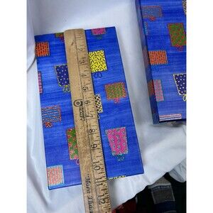 Holiday Gift Boxes Set of 2 Blue Present Print 9.5x6x1.75 In