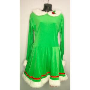 Holiday Green Velvet Elf Dress with Faux Fur – The North Pole- Women's S/M
