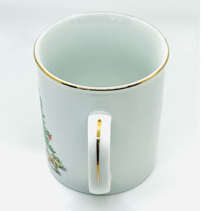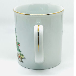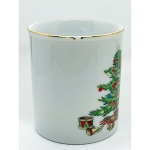 Vintage Holiday Hostess Mug Christmas Tree, Presents Gold Rimmed Cup, Coffee, Cocoa