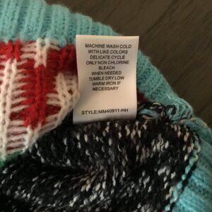 Holiday Hype Cat Christmas Sweater Pom Pom Hat Multicolor Fair Isle Festive Sz L