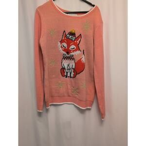 Holiday Hype L pink fox in argyle sparkle thread holiday sweater super cute!