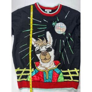 Holiday Hype Ugly Christmas Holiday Party Sweater, Llama in the Club, Large