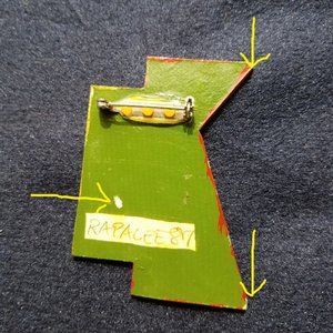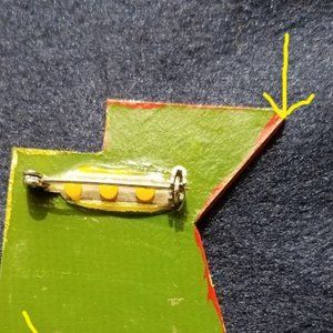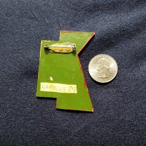 Unusual and unique. Grenada 1975 Christmas Stamp brooch. Stamp mounted on hand painted wood. Crafted , signed, and dated by Rapalee '87. Approx. measurements 2 1/2" x 1 7/8". Gently used condition (see photos). The photos are part of the description. Originally purchased at the Philadelphia Museum of Art. Vintage. Statement piece for the holidays. Unable to bundle.