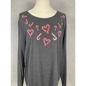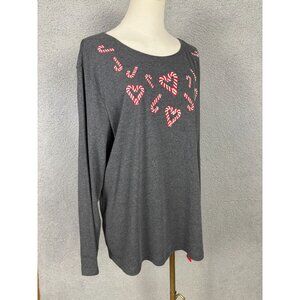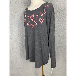 Holiday Lane Candy Cane Hearts Plus Graphic Tee Long Sleeve Gray Size 2X NWT's