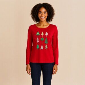 Holiday Lane Christmas Tree Red Long Sleeve Top Petites XL Cozy Wintercore