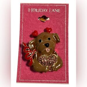 Holiday Lane Gold-Tone Pave Heart Dog Pin