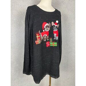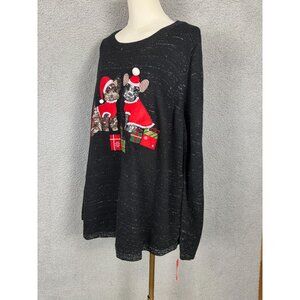 Holiday Lane Plus Black Lurex Christmas Sweater Dog Appliqué Size 1X NWT's