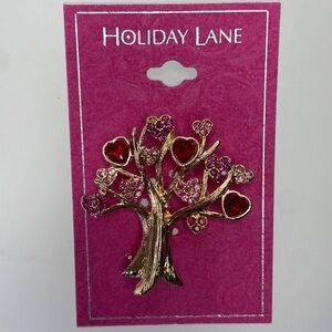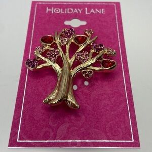 Holiday Lane Women’s Gold Tone Multi Colored Crystal Heart Tree Brooch Pin NEW