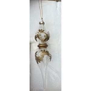 Holiday Lane Evergreen Dreams Clear with Gold-Tone Decal Finial Ornament