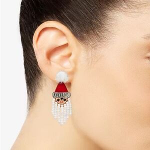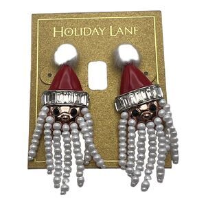Holiday Lane Silver-Tone Crystal, Bead & Pom-Pom Bead Santa Drop Earrings NWT
