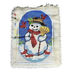 Holiday Large Snowman Completed Latch Hook Rug Christmas Wall Hanging Decor