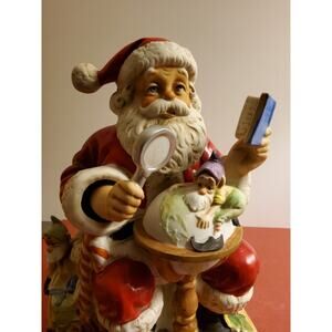This limited edition piece (#07676 of 12,000) originally featured both animation and music showing Santa inspecting his list with a magnifying glass as toys and elves surround him.