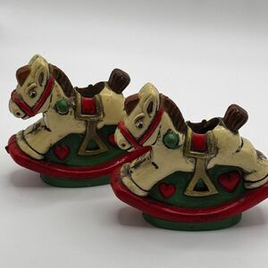 Holiday Memories Rocking Horse Mini Candle Holders Set of 2 Vintage Christmas