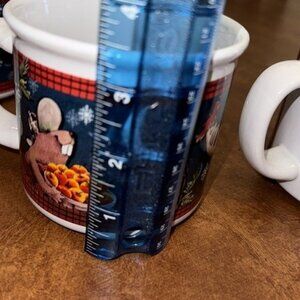 These ceramic mugs feature a charming holiday design with moose and beaver illustrations, perfect for enjoying warm beverages during the winter season. Each mug holds approximately 9.5 oz, offering a cozy and festive drinking experience with a sturdy handle for comfortable grip.