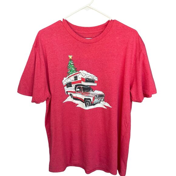 Holiday Novelty Shirt Adult Large Red RV Christmas Tree Short Sleeve Camper