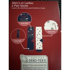 The 2 pairs of socks are designed to fit ladies shoe sizes 4-10 and are perfect for wearing during the winter season. With their novelty print, these socks are a great gift for yourself or a loved one. Celebrate the holiday season in style with these cute and comfortable socks from Merry Moments.