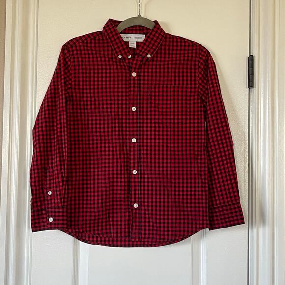 Holiday Old Navy Button Down Shirt Boys Large 10/12 Red Black Buffalo Plaid