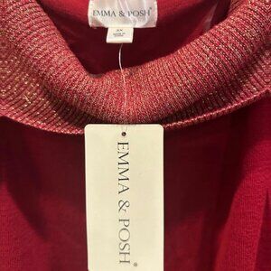 Holiday Party Red / Burgundy Swater Dress Juniors 3X /Woman's XL w/Metallic Gold
