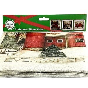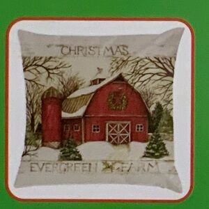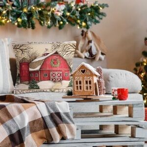 Holiday Pillow Cover Christmas Barn Country Neutral Linen Multicolor 18 X 18 in