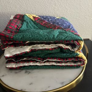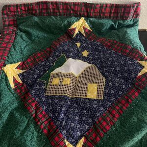 Holiday Pillow Covers Red Green Blue Hand Made House EUC