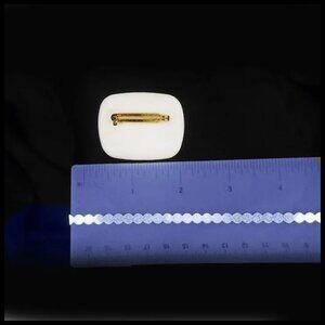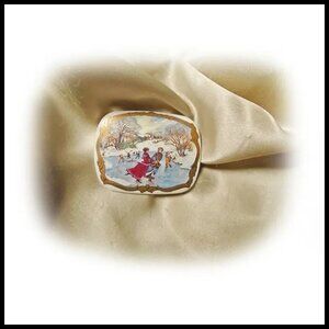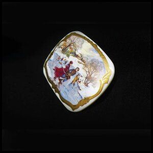 It's not marked Avon but it's a known book piece in Sandra Sturdivant's book about Avon jewelry. It's porcelain with 24K gold trim. Book states “Porcelain Winter Scene Pin, 1991, very rare. Victorian snow scene with 24K gold-trimmed porcelain.” Perfect condition, looks unused. See ruler shot to get idea of actual size. Will come in a gift box.