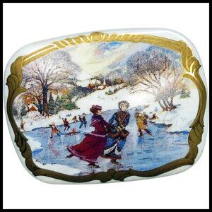 Holiday Pin Rare Vintage Avon Book Piece, Victorian Winter Skating Scene