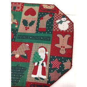 This Holiday Placemats Set includes 4 reversible placemats featuring festive designs of Gingerbread Men, Snowmen, and Father Christmas on one side and a checkerboard of Christmas trees on the other. Made of cotton, these placemats are washable and may be dried. They are 16.5 inches side and 12.5 inches tall. Please see pictures for more details.