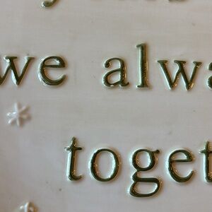 Lovely white plate with snowflake etched design and words “Through the years may we always be together.”