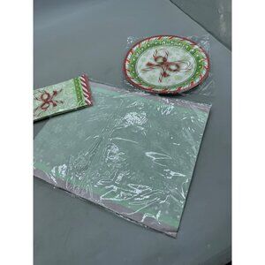Holiday Plates & Napkins place mat Set of 4 each With Candy Cane Design READ