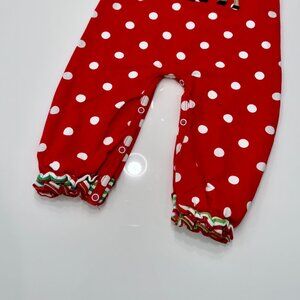 Darling Molly & Millie holiday jumper with soft reindeer applique' with ruffle detail at collar and ankle. Button bottom for easy diaper change. Machine washable. Worn once!