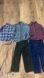 Very minor wear mainly on the cords. Almost new like but have been worn and wash. Set in blue, red, olive and tan colors, these pieces offer comfort and style for your little one. Excellent for fall and winter holidays.