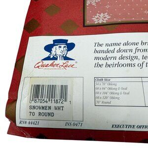 Holiday Quaker Lace Round Tablecloth 70" Round White Snowmen New Vintage