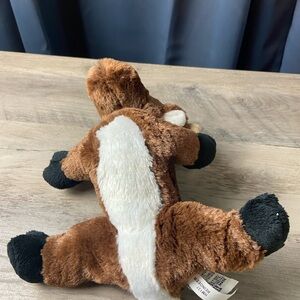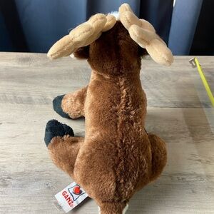 Adorable plush reindeer toy with soft antlers. Features brown fur and black hooves.