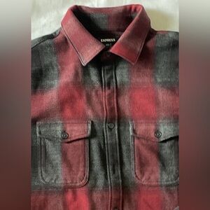 Holiday Ready! Express Men’s Red and Gray Plaid Shirt Jacket medium