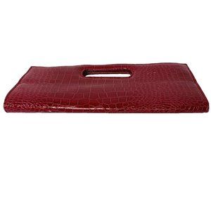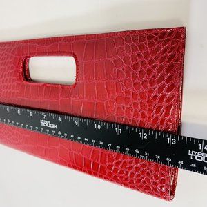 Holiday Red Croc Envelope Clutch Purse Faux Leather Snake Skin Slim New Years
