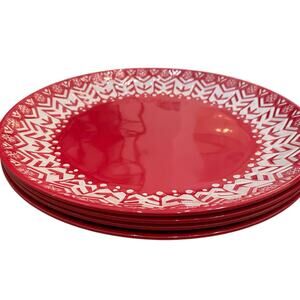 Holiday Red & White Melamine 11in Dinner Plates Set of 4 Christmas Snow New