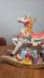 Add a whimsical touch to your holiday decor with this delightful ceramic rocking horse figurine. Featuring a blend of white, pink, and gold, it brings festive charm to any space. This still plays music. Imperfections shown. Pet and smoke free home.