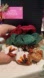 Add a pop of color to your hairstyle with this vibrant scrunchie set. Featuring shades of green, red, and orange, these accessories are perfect for any occasion.