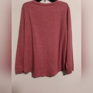 A red top with glittery words for the season.
