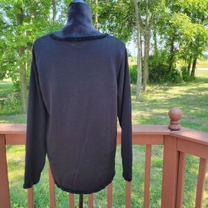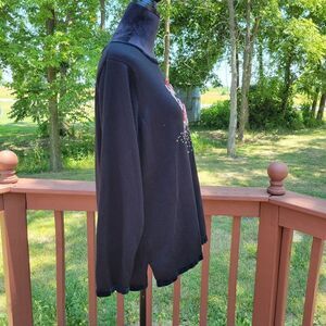 Festive holiday sweater featuring a sparkly sequin dog in a Santa hat—full of charm and perfect for cozy Christmas moments or Christmas in July vibes! Tag is missing, but style resembles Quacker Factory.