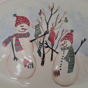 14" Stoneware Platter, Holiday scene is on the platter. No chips, cracks or crazing. Dishwasher and Microware safe. Original box . The year 1999 is listed on the box
