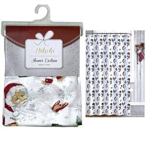 Holiday Shower Curtin Fabric Santa Snowman Christmas Bath Decor 70 x 72 Inch
