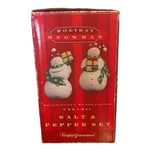 Holiday Snowman Ceramic Salt and Pepper Set - BRAND NEW IN BOX - Hand Painted